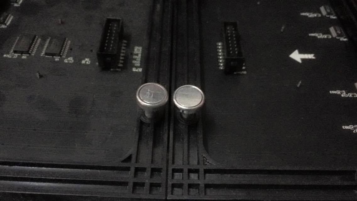 -Khung sắt: Chúng ta hàn khung sắt sao cho các thanh sắt ngang hoặc dọc ( tùy theo module và mục đích thì chúng ta làm ngang hoặc dọc đều được) sao cho các nam châm trùng vào thanh sắt để bám